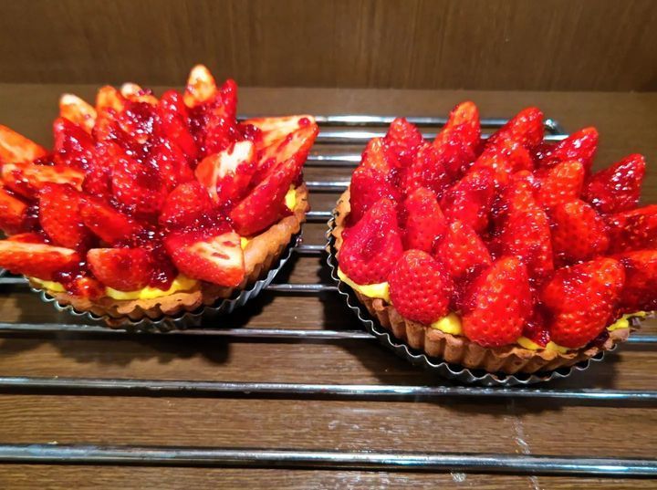 当店のこのタルトが人気な訳は勿論厳選した苺を使用している事にありますが、苺の表面を自家製のフランボワーズジャムでナパージュしております。これが人気の秘密♥