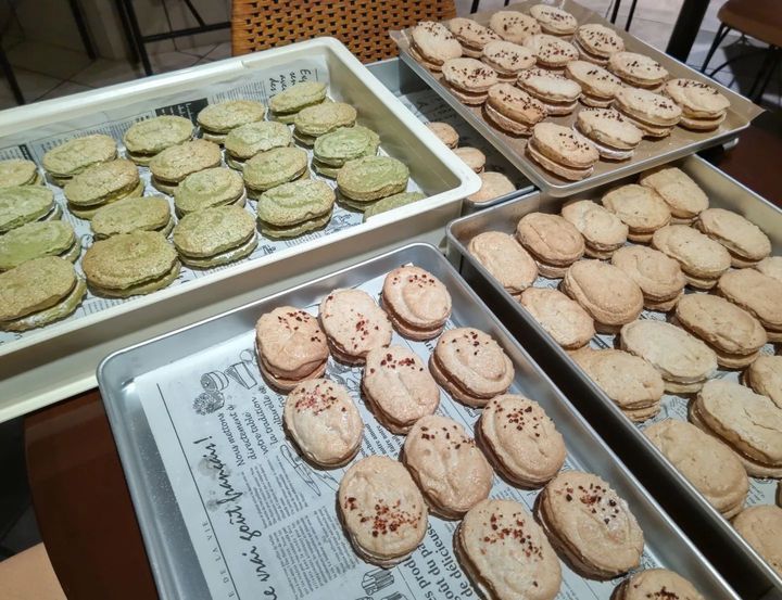 追加になった「苺のダックワーズ」のベースを焼いてから帰る事にします💪