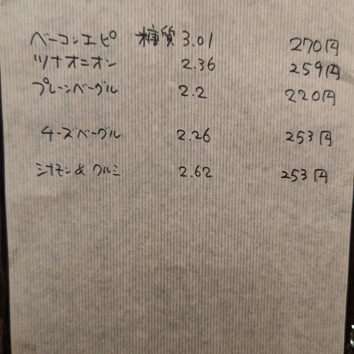 各パンの糖質とお値段は3枚目の画像を確認下さい