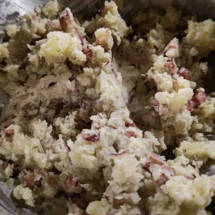 ロックフォール(羊のブルーチーズ)とカリカリベーコンを入れたおつまみポテサラを作りました!