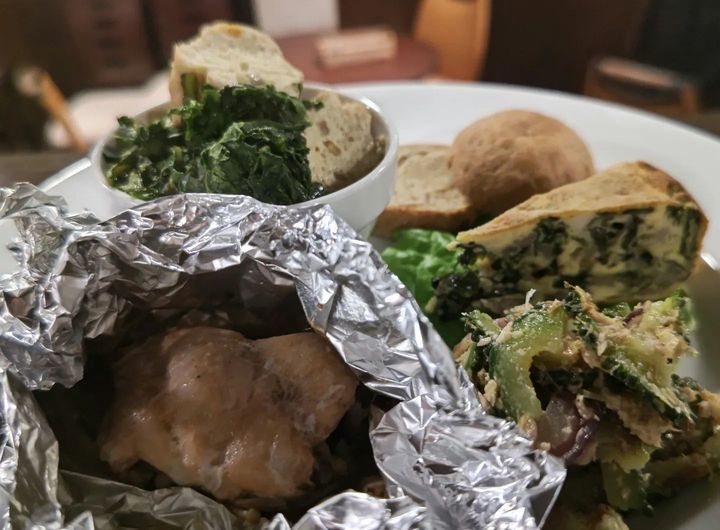 ☆舞茸、モロヘイヤ、ベーコンのオムレツ