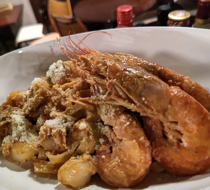 「有頭海老とベビー帆立のトマトクリーム」