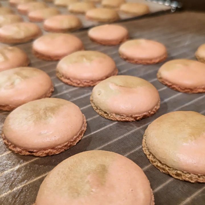当店のマカロンは色粉を使用しない天然素材のパウダーを使用しますので、見た目は地味で画像だとわかりにくいかもしれませんけど。