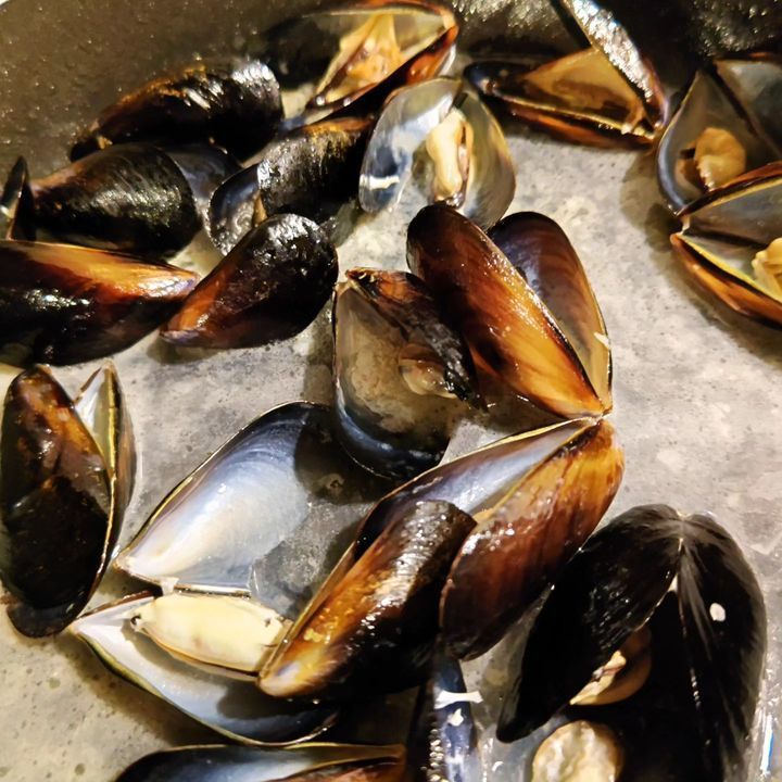 先日のムール貝は、大小様々でしたので小さいのだけ間引きして蒸し物に。この上に昨日の塩ラタトゥイユをのせてマリネとして提供します!