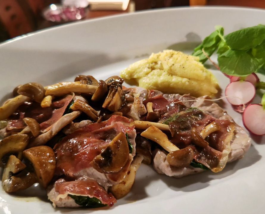 本日のサルティンボッカはシャンピニオンソースで🥳