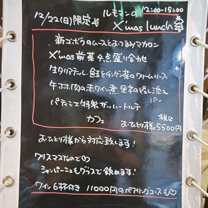 12/22(日)クリスマスランチのみ。